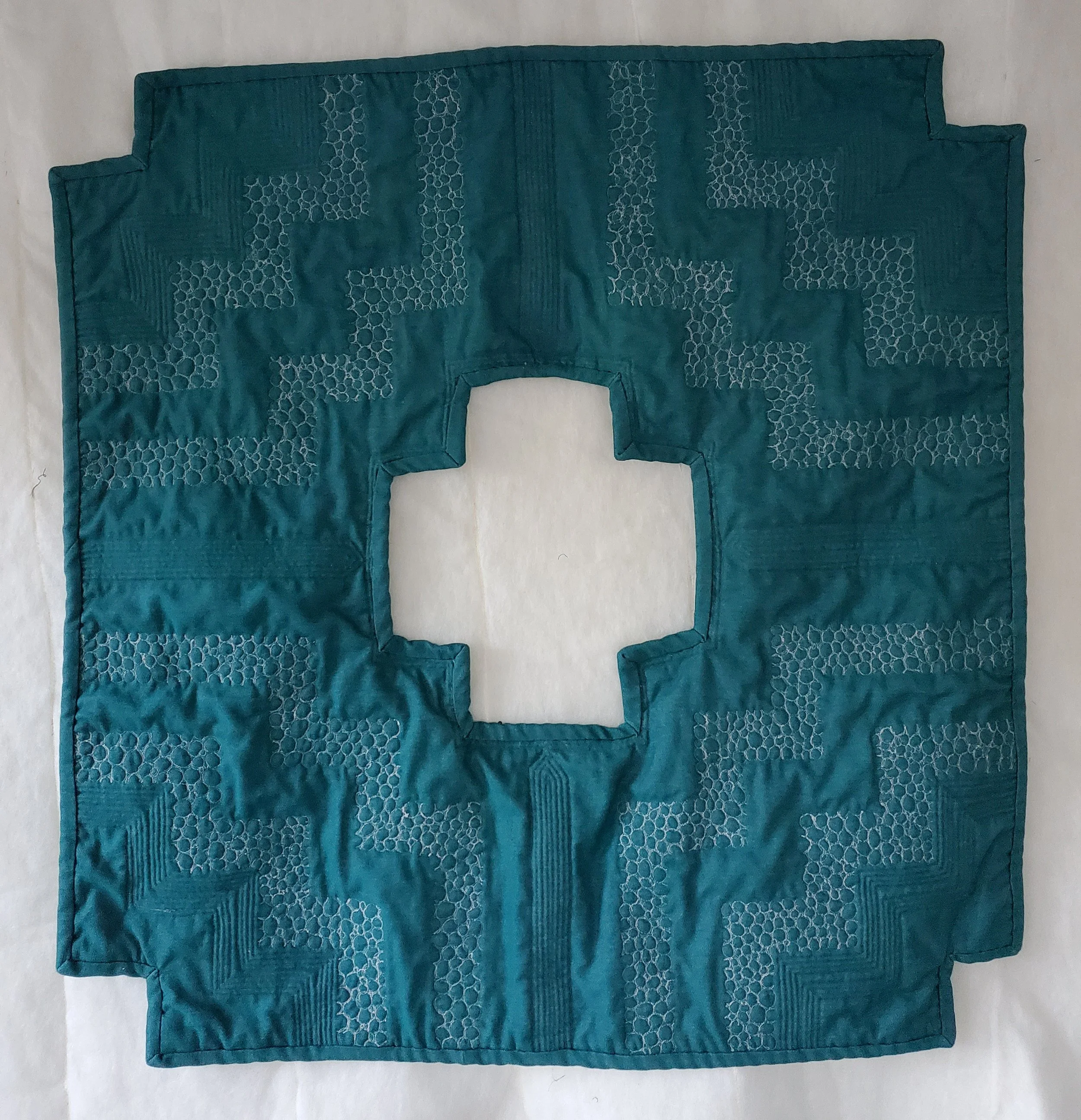 You’ll often hear in the quilting community to start from the center when quilting as a general rule. It’s so that the fabric of the quilt top stretches evenly as the ‘sandwich’ is stitched together. Pretty much all quilts have a center, why wouldn’t they? So what happens when your quilt doesn’t have a center? Again, in playing with this notion of what makes ‘a quilt’, I found myself having to get creative with the stitching.