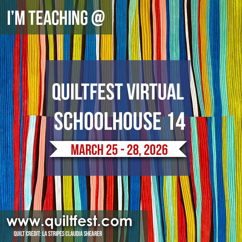 Feb 1 & 8 (two sessions) Quilted Postcards April 4 - Working with Color for Quilters and Artists October 9 & 10: Color Conversations & Giving Orphan Blocks a New Home Workshops March 25-26: Canadian Smocking & Thread Weaving/Sculptural Embroidery Sewing and Quilting Classes [VIRTUAL] Beginner Sewing, Quilting Classes & [IN-PERSON] Workshops Classes & Lectures for Guilds Maryland Artist Register Dual-Z Market Bag Pattern Art Gallery Tutorials Shop Now Artist Talks Contact